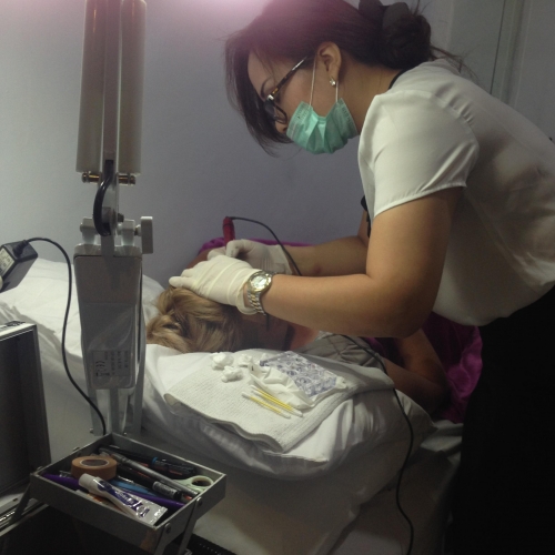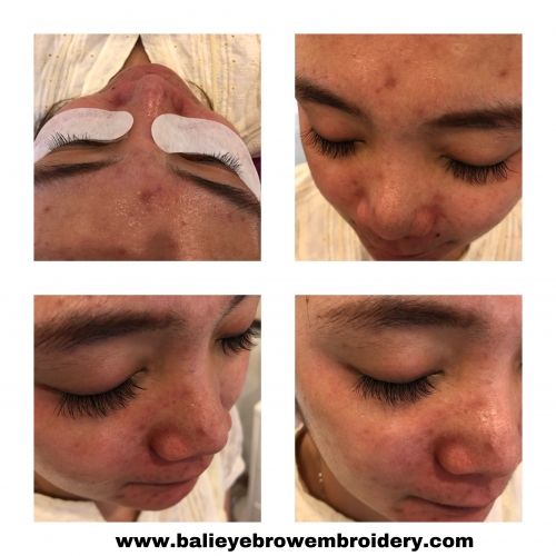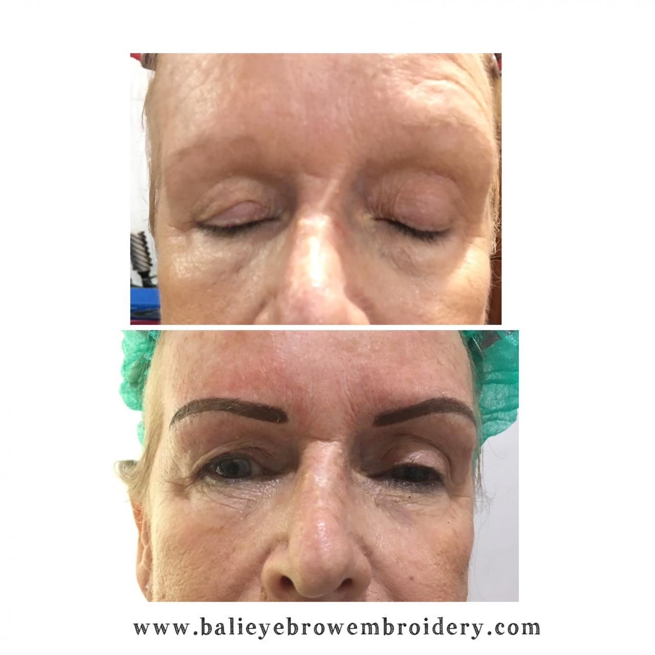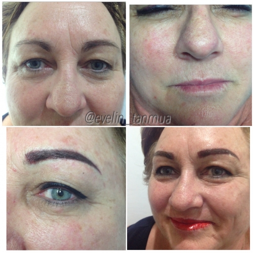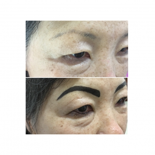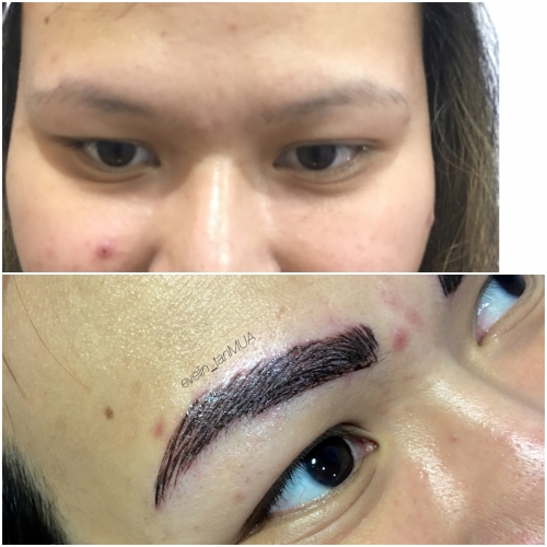 First the technician will clean the eyebrow with sterile water. Then technician will draw the pattern and shape of desired brows shape. After an anaesthetic cream will be applied to reduce the sensation of pain. Then the technician will use a small pen blade to apply the the new colour of the top of layer of the skin. All tools used are completely sterile and no reuse needles or blades. The new package of needle and blade will be opened in front the client. After the process there may be some redness and minor swelling but should be disappear within a few hours to a couple days.