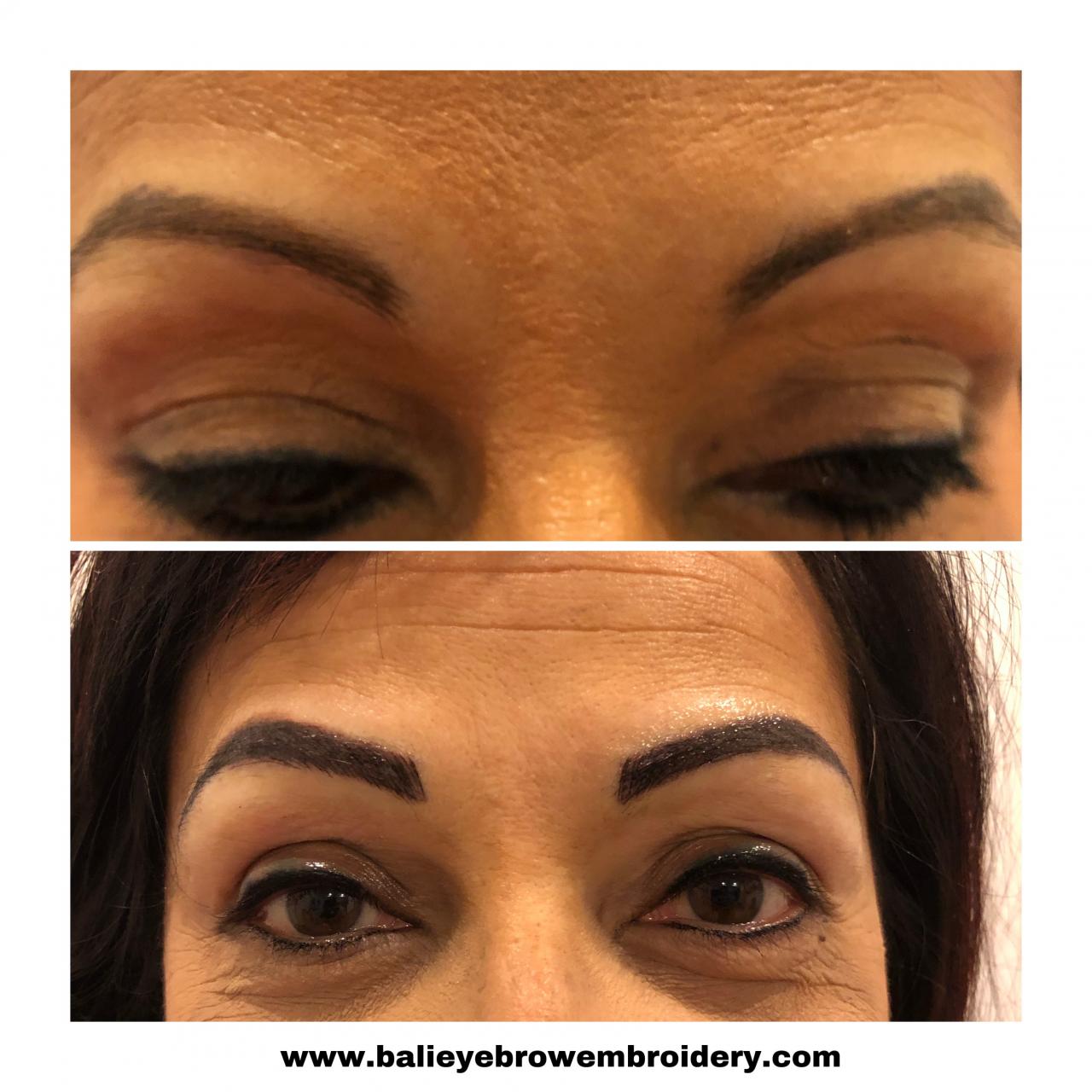 Eyebrow embroidery is a process to adding coloured pigment to the skin, this technique fills in empty spots on your brows to give them a full and flawless look. Eyebrow embroidery is also great for thickening existing eyebrows or darkening them and making them more apparent. This unlike eyebrow tattoo, because eyebrow embroidery only can last up to two years,while tattoo are for forever.